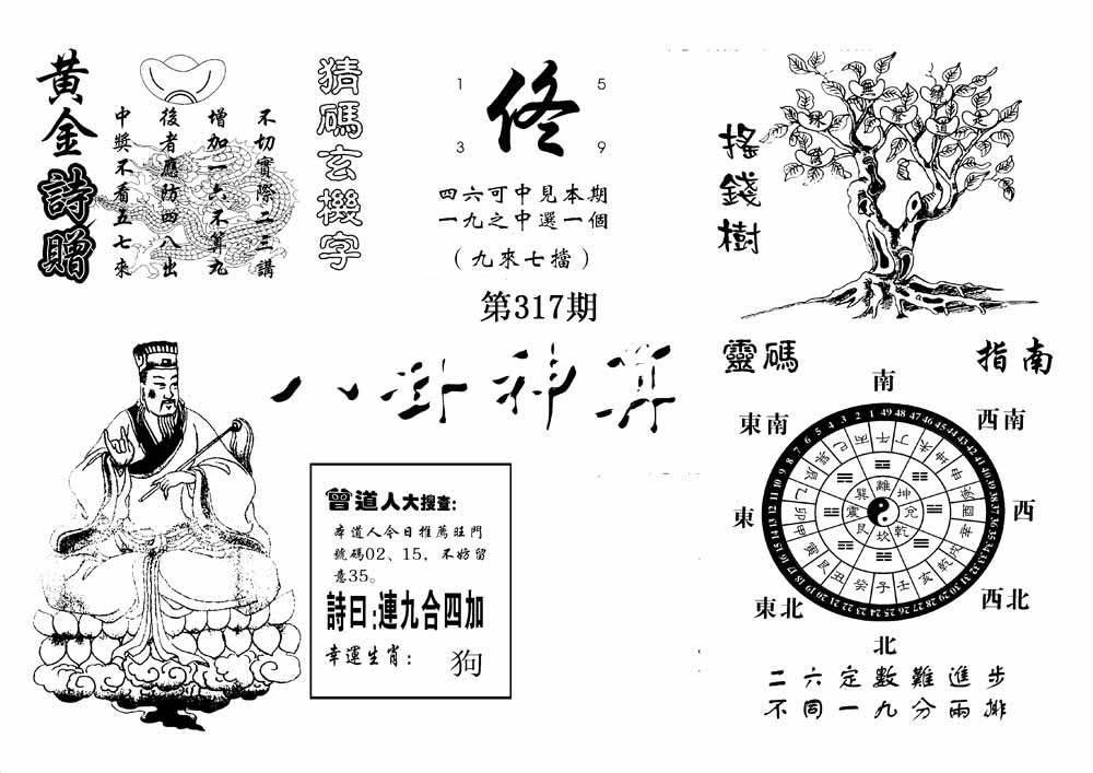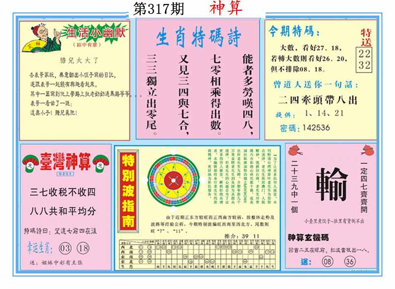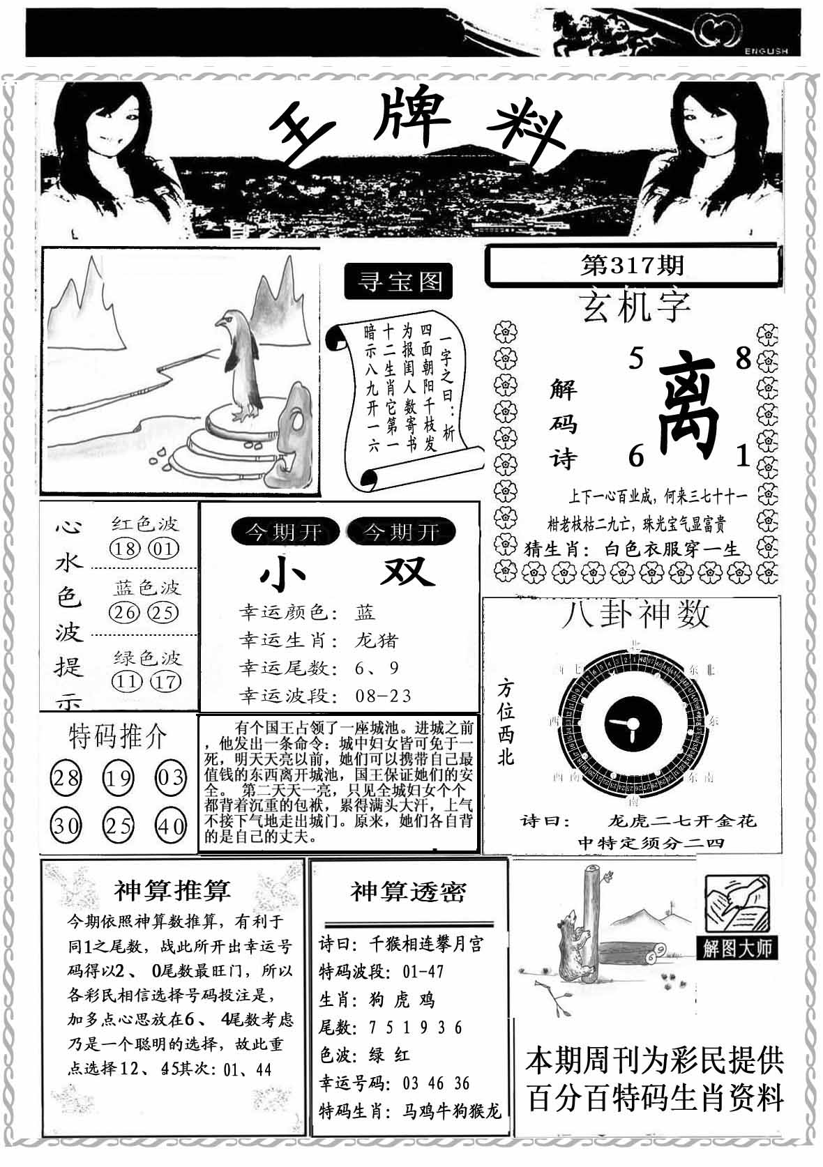 | 317期:神奇七尾【4 1 5 2 7 0 3】开:?00 |