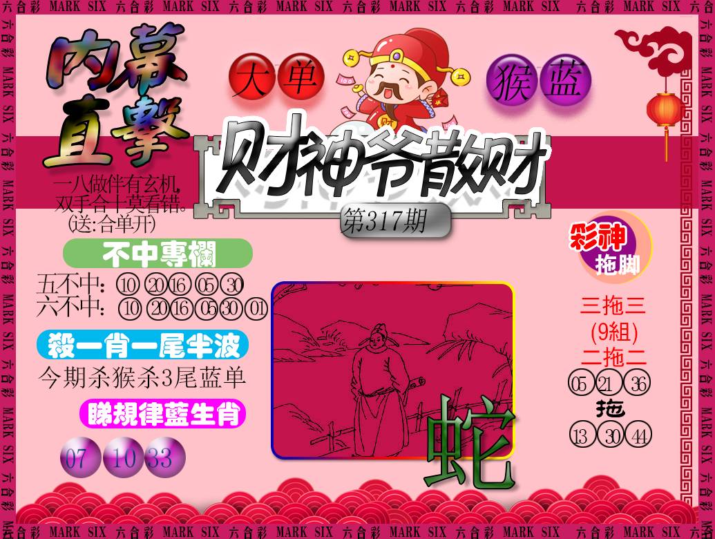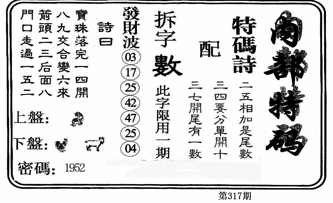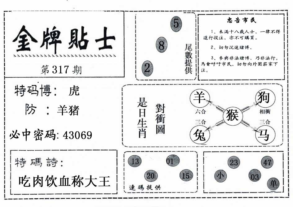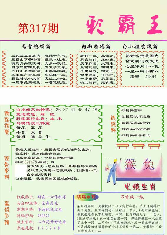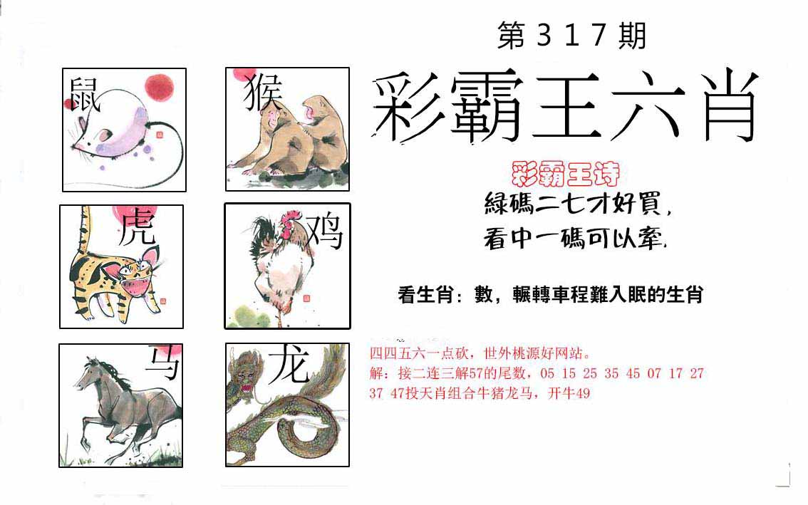 | 317期:《主攻:内幕规律平特肖:<鼠>下50万》! | ||