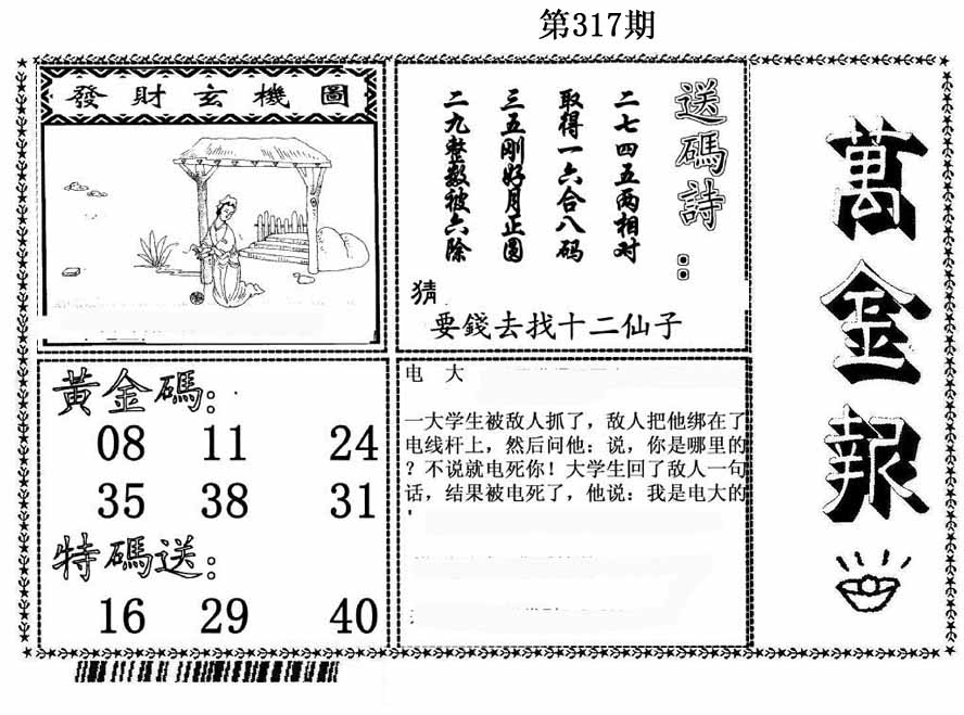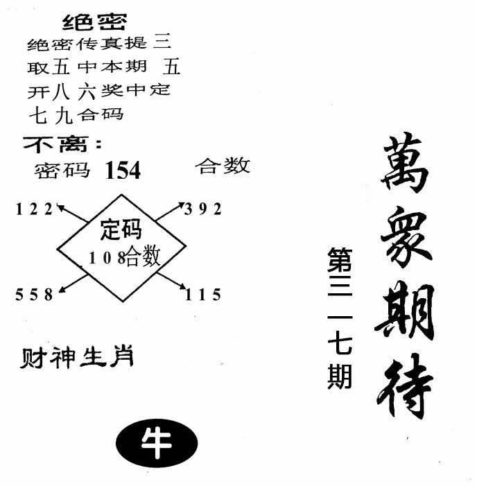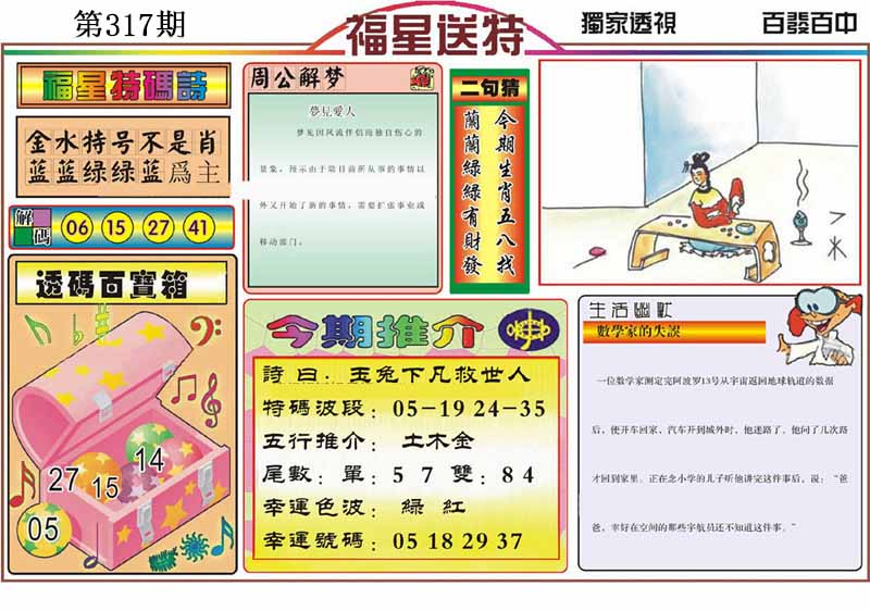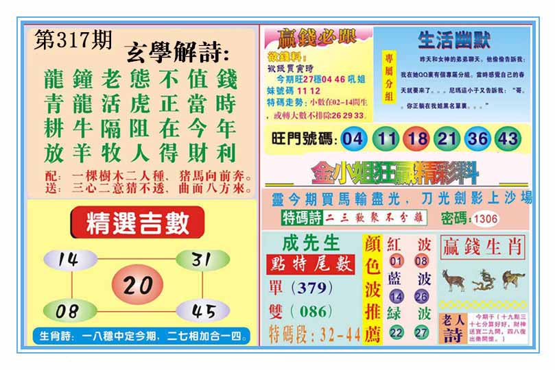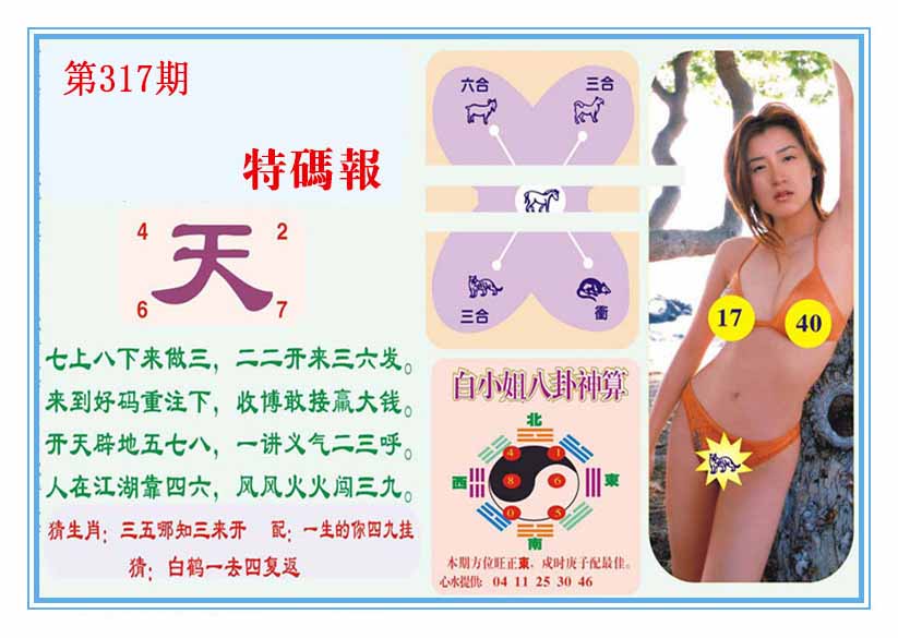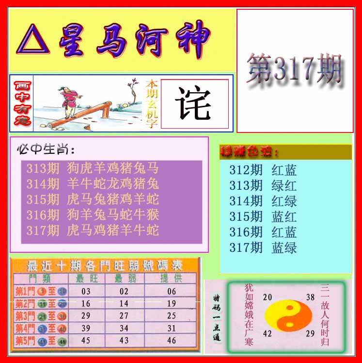 | 317期:《主攻:内幕规律平特肖:<鼠>下50万》! | ||
