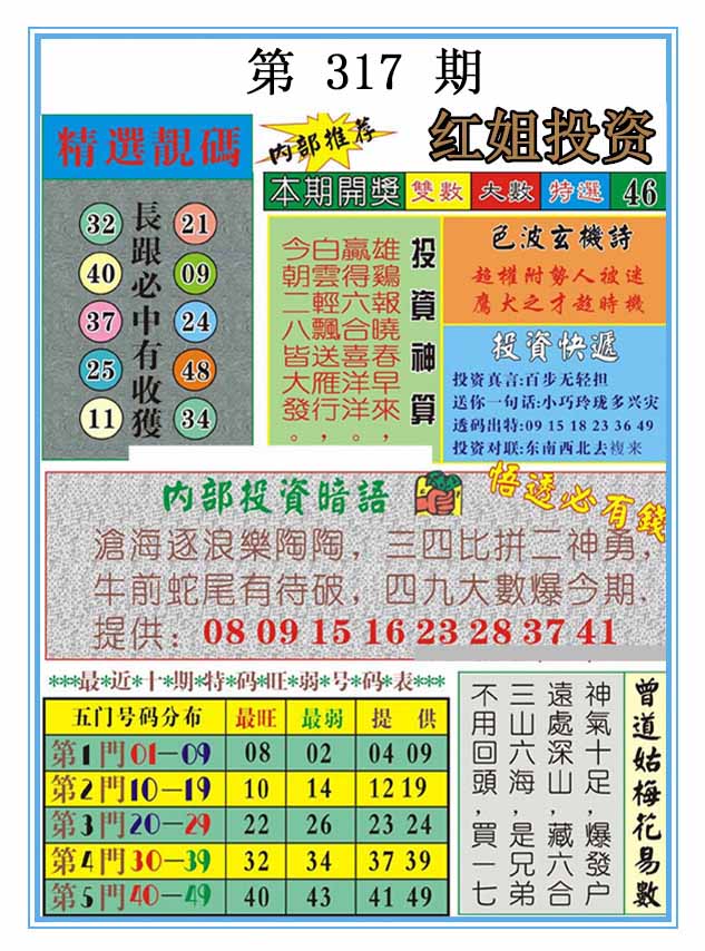 317期原创24码中特开:?00 36,16,31,47,48,29,18,27,35,43,12,39 38,09,37,30,10,05,45,41,42,26,24,34 |
