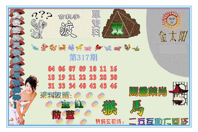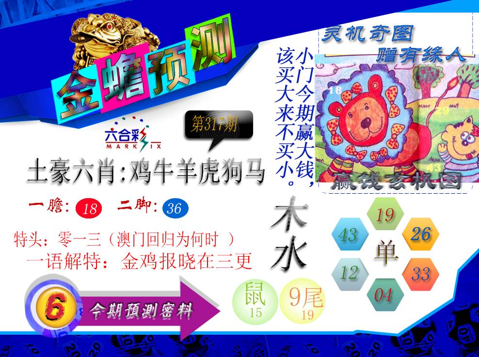 317期推荐六肖:<鼠马羊兔猴狗>内幕资料请大胆下注! | ||