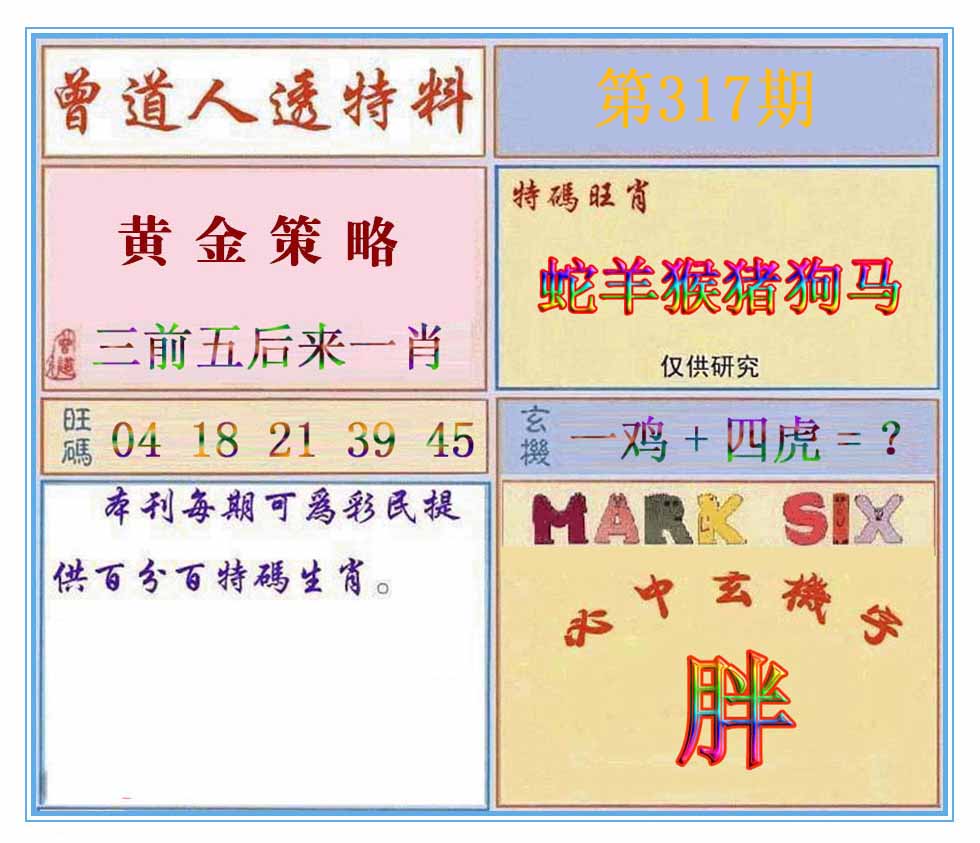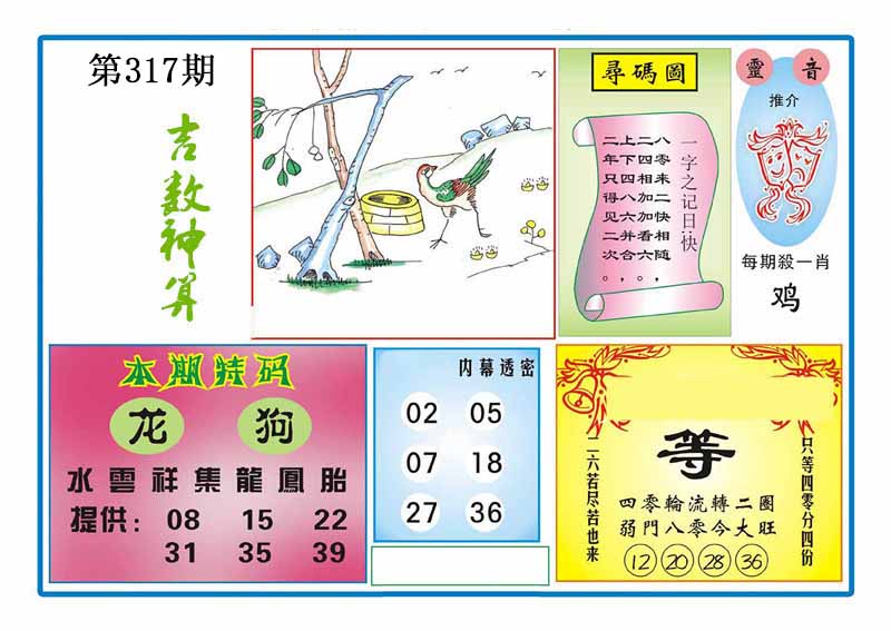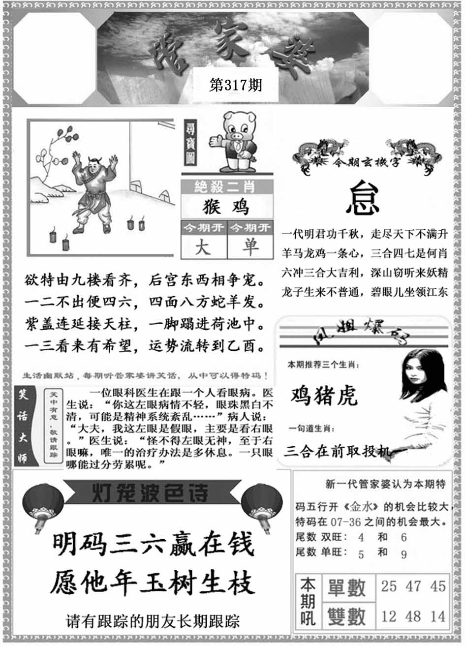 | 317期:(泰国挂牌)平一肖【鸡】开:?00 |