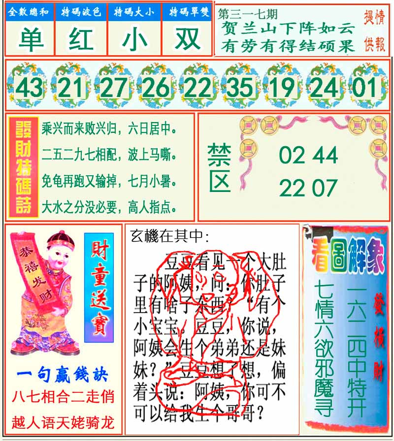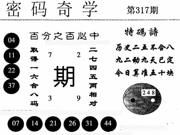 317期原创20码中特开:?00 48,31,24,37,07,01,13,12,02,21 10,05,25,26,20,28,22,41,40,33 |