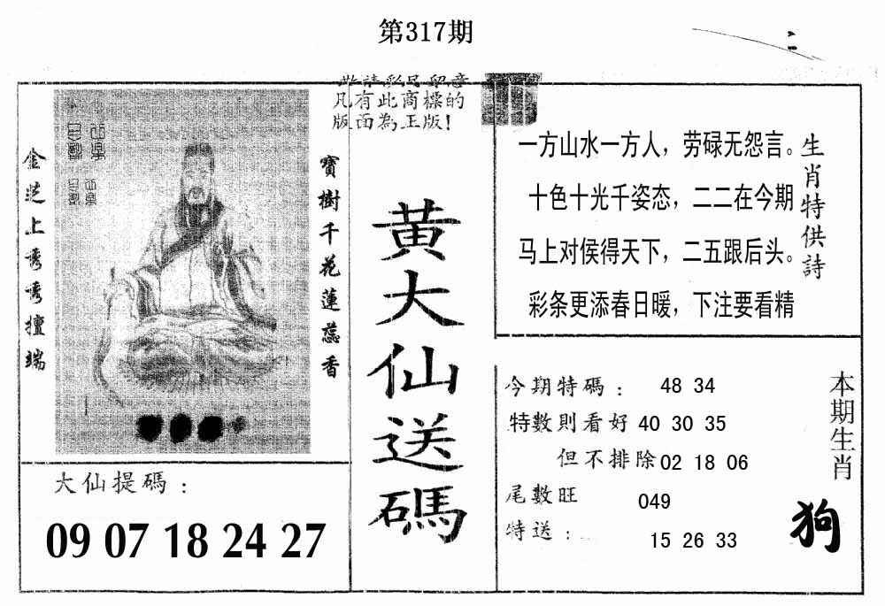 317期:【跑狗九肖】开0 跑狗九肖:鼠马牛蛇狗虎鸡猪羊 跑狗七肖:鼠马牛蛇狗虎鸡 跑狗五肖:鼠马牛蛇狗 跑狗三肖:鼠马牛 12码:14 12 31 15 49 27 04 36 32 28 17 38 | ||